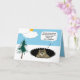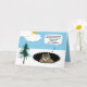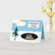 This funny groundhog day card features a groundhog emerging out of his hole. A talk bubble above him reads, "Wouldn't you know it, the one day of the year I have to work, I wake up with a headache!" In the background you can see the sun trying to peak out through the clouds and to the side of the groundhog is a little tree covered in snow. Inside the card it reads, "Let's hurry this up ... Happy Groundhog Day." This card is a fun way to say Happy Groundhog Day! Copyright Kathy Henis