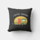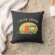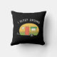 Funny dark throw pillow has "I sleep around" customisable text with cute yellow and green retro style RV camp trailer on green background . Perfect for those that love the lifestyle of RV camping in campsites, rv parks and remote off the grid spots- where parking your rig in multiple places for days, weeks or months is just a way of life.
