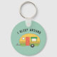 Funny keychain has "I sleep around" customisable text with cute yellow and green retro style RV camp trailer on green background . Perfect for those that love the lifestyle of RV camping in campsites, rv parks and remote off the grid spots- where parking your rig in multiple places for days, weeks or months is just a way of life.
