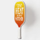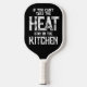 Distract (and get a rise out of) your opponent with this whimsical pickleball paddle, which tells them "If You Can't Take the Heat Stay in the Kitchen." Reverse shows identical design on a solid black background.