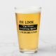 A funny beer glass with a hangover quote. I'm never drinking again is drinking again!