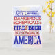 This funny greeting card is perfect for sending a laugh to honour Independence Day or for inviting friends to your July 4th party. In red and blue typography, the front says, "Let's Combine Dangerous Chemicals, Fire & Beer in Celebration of America." The inside text can be personalised. Customise it to change the font or add more text.