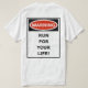 "Warning, Run For Your Life!" Funny and inspirational running shirt or race shirt for runners of any races. Designed for those thinking of passing you in a race or out in public. 5k, 10k, 50k, half marathon, full marathon and ultra marathons -- trail or road races. Choose your own style or colour of shirt. You can even add your own text to customise it for your own races or personalise it any way you like.