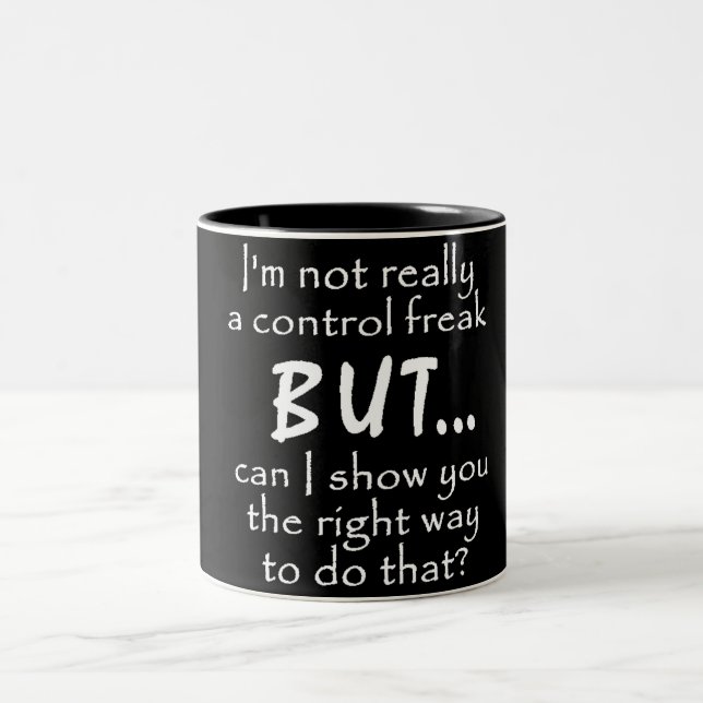 FUNNY INSULTS CONTROL FREAK QUOTES COMMENTS BLACK Two-Tone COFFEE MUG