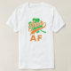Funny "Irish AF" t-shirt featuring a green shamrock and "Irish" in a retro orange script.