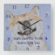 This happy slogan on this customisable clock "Smile And The World Smiles With you"" says it all about this funny smiling akita picture because a Japanese akita’s smile spreads happiness to everyone. This cute Japanese akita is my sweet girl named Asia, one day I saw her laying on her back with this wonderful happy akita smile on her face and I photographed her, then from the photograph and painted her portrait in water-colour. The fun phrase is printed just below the happy akita dog face. This is a customisable clock, you can personalise it with your own text For everyone who loves this funny dog picture but aren’t acquainted with the Japanese akita breed here’s an "in brief" description of this unique breed of dog-: They’re large dogs, big gentle giants who require lots of consistent training and anyone who wants to be "owned" by an akita needs to study the breed thoroughly. The best place to go first is an akita rescue website where you’ll find lots of information on these amazing dogs and hopefully you'll also be able to givr a Japanese akita s forever home and find your friend and companion for life, my precious akita girl comes from Akita Rescue and Welfare U.K. and I think her funny akita painting looks great on this original clock. So, if you want to see an akita smile take a trip to akita rescue . If you're interested in commissioning a pet portrait for yourself or as a special gift for someone, please don't hesitate to email me for further details. I look forward to "chatting" to you:)