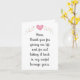 I customised this card for my Mum for Mother's day. Such a simple, yet elegant looking card. I love how easy is it to personalise it. Arrived within a good time frame and on time. My Mum loved it. We live on the other side of the world so it's lovely to be able to send something special with a personal touch. I've used zazzle for a long as I know now and I highly recommend if you want to send a specially customisable card to a loved one or friend. Great quality. Perfect