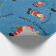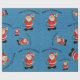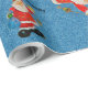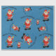 Funny Jolly Santa Claus Father Christmas Pattern Blue Background Holiday Season Gift Wrapping Paper with text Merry Christmas, you can change the text