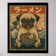 Funny Kawaii Ramen Pug Japanese Noodles Pug Eating Poster