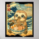 Funny Kawaii Sloth Ramen Noodle Bowl Japanese Wave Poster