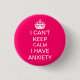 Inspired by an antique WWII British poster slogan, "Keep Calm" designs are very trendy and popular. This pink button design spoofs the original "Keep Calm and Carry On" phrase and says "I Can't Keep Calm I Have Anxiety." This is a funny, hilarious, humourous take on the original saying and includes the white crown graphic on top.