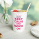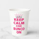 Funny Keep Calm and Bunco On party cup for your next Bunco event. Fill with beverages, snacks, or candy. Modern pink typography with crown and three lucky bunco dice. Perfect for all players.