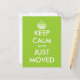 Funny keep calm moving postcard for new home. Make your own funny keep calm and carry on parody design for your new address. Keepcalm humour for home and business. Change quantity to get the cheapest price per post card. Personalised text on the back. Apple green colour.