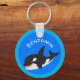 This cute design features a happy smiling killer whale blowing bubbles on a blue background for fun!
