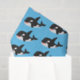 This cute design features a happy smiling killer whale blowing bubbles on a blue background for fun!