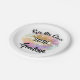 Funny kiss my class goodbye with a big kiss paper plates. These paper plates are perfect for your graduation party with fun typography and pastel and gold sparkly lips. Add the graduating year for that custom touch. Easy to personalise with custom options.