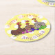 Funny knitting chickens cartoon illustration round paper coaster