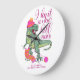 A funny knitting quote "I knit so I don't kill people' is included on this humourous image. The dinosaur (a Tyrannosaurus Rex!) is knitting a scarf and wearing a cute hat. Add your own message to personalise for a dino-mite gift.