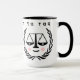 Creative lawyer coffee cup mug featuring funny personified scales of justice. To personalize edit text to add attorney's name.