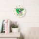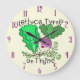 This cute cartoon wall clock has a drawing of lettuce, a turnip, and thyme, alongside the funny, punny words, "Lettuce Turnip on Thyme" (let us turn up on time).