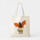 Funny librarian and teacher bag with a cute bat book lover flying over some books and the text "Meet me at the library".