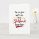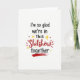 This greeting card features a simple off-white background with a centered message that feels honest and supportive. The text reads, “I’m so glad we’re in this Shitshow together,” with most of the words in black, casual script. “Shitshow” stands out in large red brush-style lettering right in the middle, with short red lines around it like little bursts. Small yellow stars and a few tiny red hearts sit near the main word, adding a sweet touch without taking over the design. The final word “together” appears near the bottom in black script and is underlined by a thick red brushstroke. Overall, it mixes humor with affection, like a note to someone you trust when life gets messy ❤️💌.