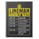 Funny Lineman Hourly Rate chart design. Customise it as you wish. Great gift idea for every lineman and electrician on Christmas or Birthday.
