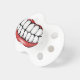 Here's a cute soother or pacifier for your spunky little baby with personality! Simple black white and red cartoon graphic of a mouth full of large teeth.