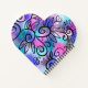 A funny little bird, lovely floral elements, and a little heart on a pink, purple and turquoise background.