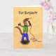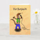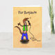 Funny lizard singing with microphone cartoon card