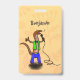 Funny lizard singing with microphone cartoon ID badge