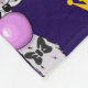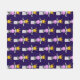 Fleece blanket with a charming yet funny pattern. Designed with a whimsical llama blowing a big pink bubble while chewing gum. Wearing a gold crown and a black bow tie. Dark purple background.