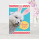 White llama with white bunny ears, saying "Happy Easter!" Yes, this card has been "llama-nated". If that's too weird you can always edit the inside copy. :)