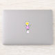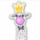 A vinyl decal with a whimsical llama blowing a big pink bubble. Wearing a gold crown and a black bow tie.