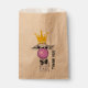 Thank you favour bags with a whimsical llama blowing a big pink bubble. Wearing a gold crown and a black bow tie.