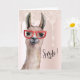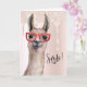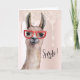 A fun way to thank someone for a gift or kind deed performed. Funny llama with typography text that says smile. Faux glitter sparkle background. The perfect unique way to say thanks!