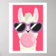 Funny Llama Poster with Bubblegum for Kids Room