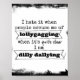 Funny quote posters in black and white with the quote, 'I hate it when people accuse me of lollygagging when it's quite clera I am dilly dallying." Black grunge edges. Background colour can be personalised with your own colour. (light colours recommended) See more at our store, Motivate Me. Link below: