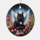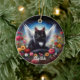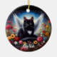 Funny Long Haired Black Demon and Angel Cat Ceramic Ornament