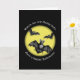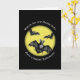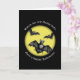 A cute Halloween greeting card that is both funny and scary, this design has a 3-D effect with a trio of eerie black bats flying against a yellow moon in the night sky. Whimsical text on the front says "Watch for low-flying bats. Have a Happy Halloween!". The inside text may be kept as written or edited with your desired wording.