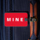 Funny red luggage tag with 'Mine' written on it