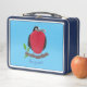 This is a standard metal lunchbox that appears to work just fine. We designed this box ourselves with an uploaded photo and custom text on the front and back. It looks absolutely beautiful except the front of the lunchbox is not centered like it shows in the photo. The print borders don't align with the inset flat part of the box where the preview photo online showed it perfectly centered in there. The back looks nice and centered though.