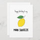 Happy birthday to my main squeeze - funny birthday card with a minimalist illustration of a lemon