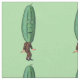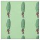 This custom fabric by the yard has a repeated image of a funny man in a brown suit with a big green pickle head with a surprised looking face on a light green background.