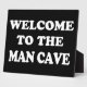 Welcome your buddies to your man cave with this funny plaque that reads, "welcome to the man cave" in bold white letters on a black background.