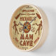 This funny, personalised man cave design has a cave look, as if it is drawn on a stone wall. It includes primitive drawings of men throwing darts, a dart board, a TV, a football, two baseballs bats and baseballs, pretzels, pool cues and a couple retro beer bottles. It's made in shades of brown, yellow and a little red.