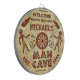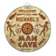 Create your own humourous, custom "man cave" dartboard using this easy template. Made to look like the wall of a cave, the dartboard has primitive drawings of men throwing darts, a dart board, two baseball bats, two pretzels, a couple beer bottles and pool cues. The dartboard can be easily personalised with your name and the year your home bar or "man cave" hideout was established. The whole game board is in shades of brown, yellow and a little red. This is the ultimate man cave dartboard for your male sanctuary.