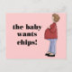 This funny maternity design says The Baby Wants Chips. Every pregnant mum has cravings; just blame it on the baby! Great gift for a friend or family member who is expecting.