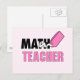 Funny Math Teacher Pink Eraser Postcard