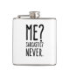 The flask itself is fine. It’s a cheap flask, obviously bought in bulk, however am prepared to overlook that. Given that it is a personalized item, I would have liked to have seen gift boxing instead of the generic packaging. Terrible printing, and/or quality. It’s a cheap, tacky vinyl. It is not cut straight and is also applied in a way that it is overhanging the bottom, causing the glue to catch on items and it will eventually roll and tear, damaging the wrap.